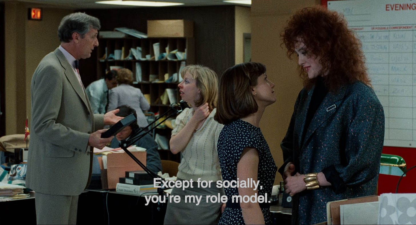 There is nobody else making films quite like this anymore; slapstick-y, egregiously sentimental, actor-forward. They are borderline-crude in tone, disarmingly subtle in their characterization, and politically unreal in a way that algorithmic homogenization has drilled out of anyone under the age of 60. His films follow an Old Hollywood logic, where Joan Cusak does parkour between filing cabinets (Broadcast News) or men routinely block traffic with their displays of love for Reese Witherspoon (How Do You Know). Amidst such bigness, Brooks slips in minuscule gestures, such as the evolving non-verbal signals between the mother-daughter duo in Terms of Endearment.