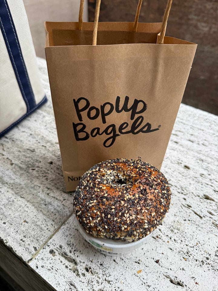 So, I walk a few blocks north, sneering at Leon’s on my way to PopUp. PopUp’s mild scallion cream cheese along with their well-documented refusal to slice and schmear the bread (it is truly more bread-like than bagel) is suitable for in-theater consumption.2