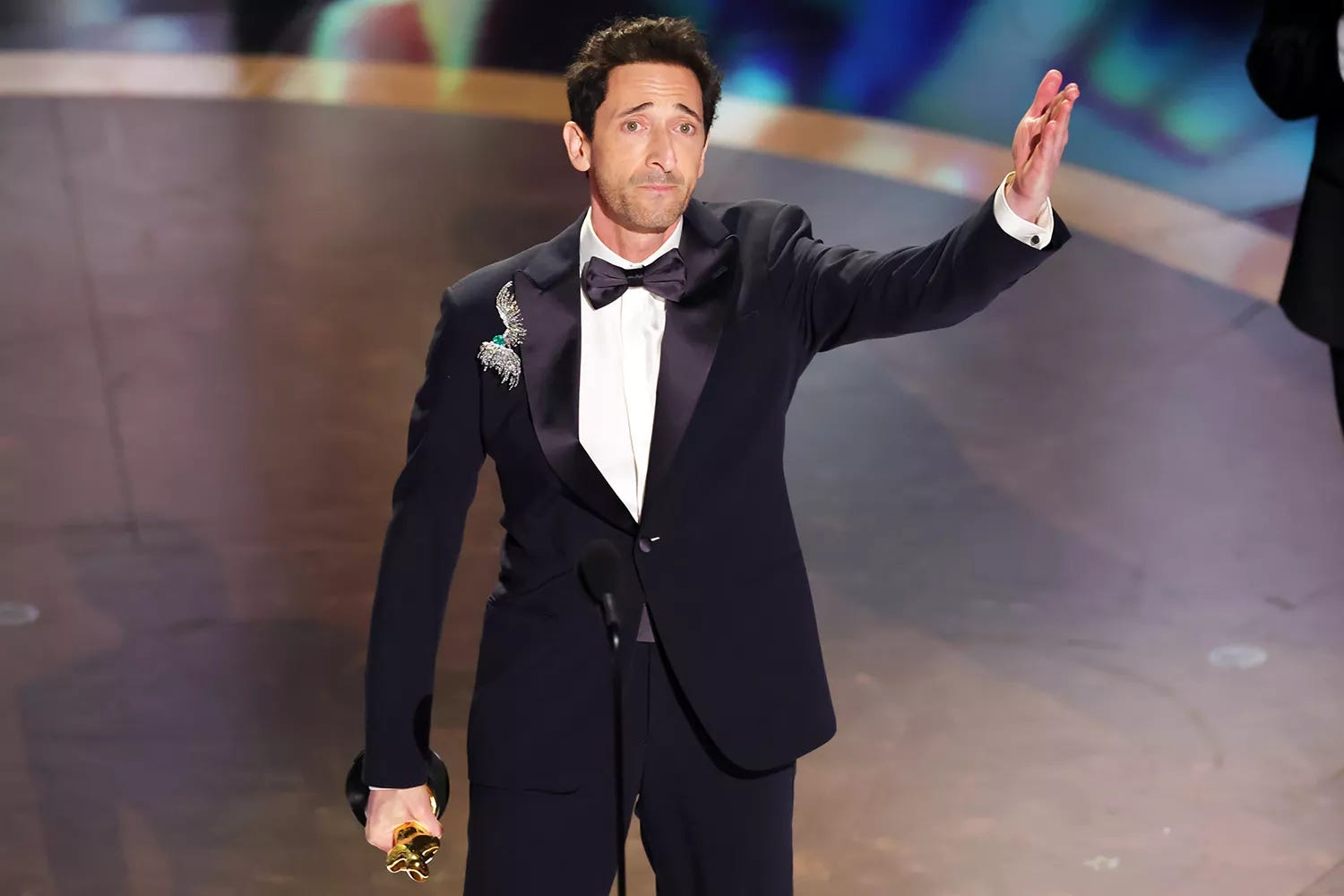 Literally anyone but Leo, please. Whatever emotion he’s playing can usually be modified the same way painfully. Painfully sad, painfully aggrieved—here, painfully stoned. It’s presumably meant to be funny, but his acting style remains the very embodiment of the opposite.